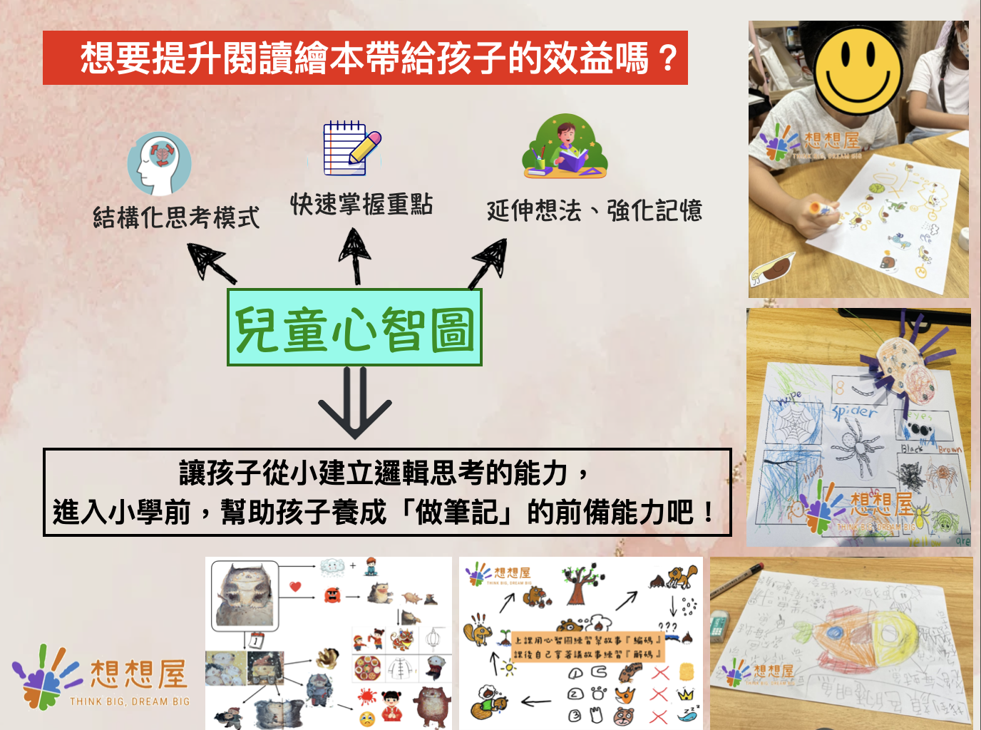 用一本繪本,讓孩子跟著聽故事、動動腦。藉由圖片取代文字,一樣能讓孩子練習心智圖!